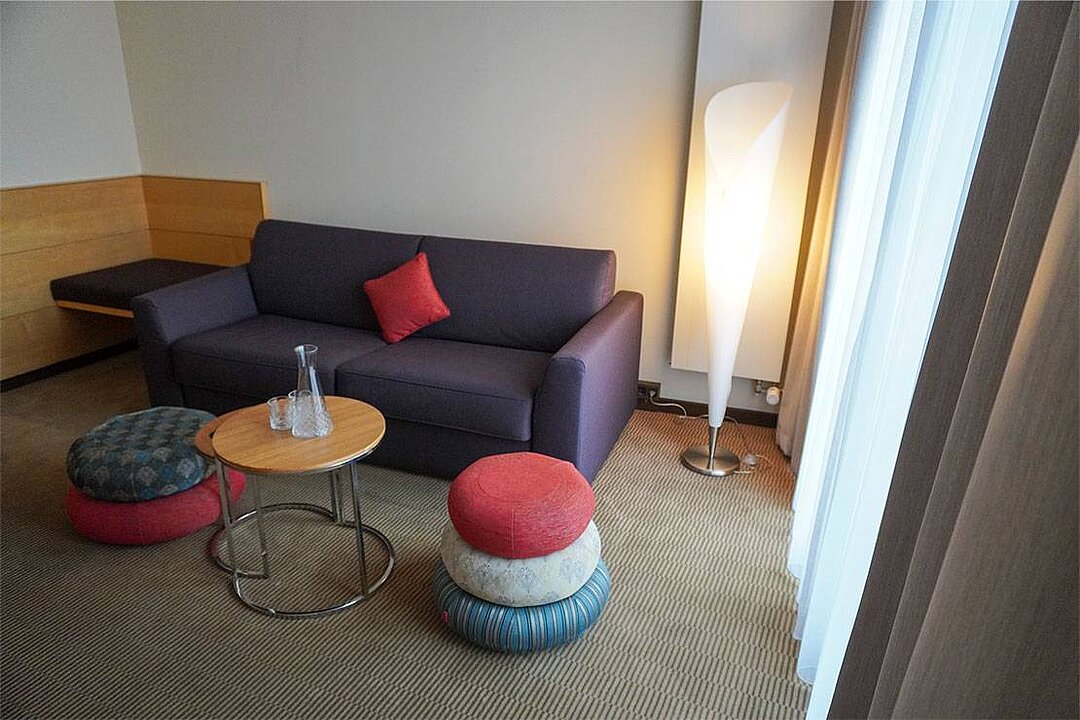 Helle, lichterfüllte und geräumige Junior Suite mit separatem Wohn- und Schlafbereich. Diese Zimmerkategorie im Berliner Wellnesshotel centrovital punktet mit moderner und natürlicher Einrichtung mit schönen Ahorn- und Nussbaumhölzern, geöltem Ulmen-Parkett und einem besonderen Akzent zum Wohlfühlen.
