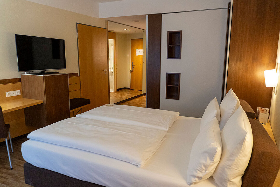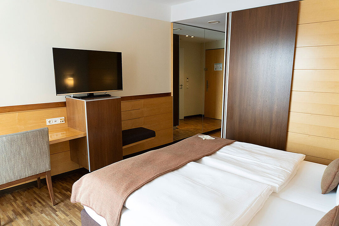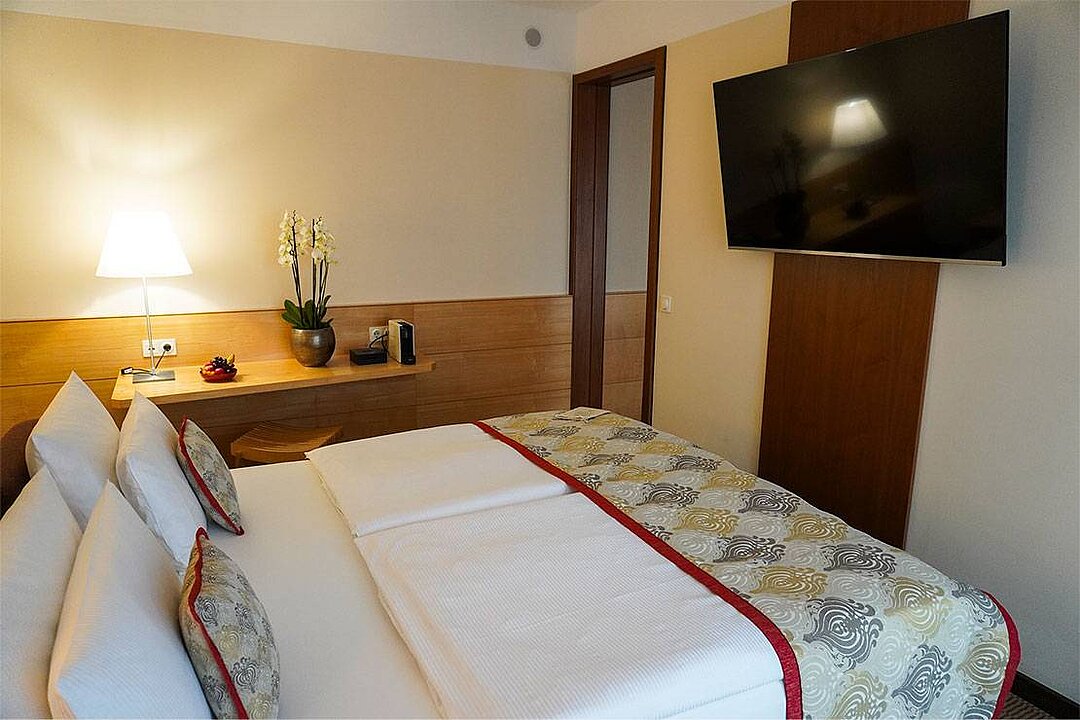 Es erwartet Sie ein helles und freundliches Zimmer mit allen Vorzügen eines 4-Sterne Superior Hotels.